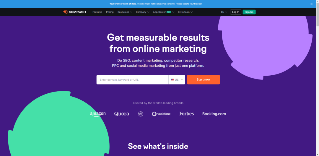 SEMrush 是一款以 SEO 为核心的软件,主要是为企业的网络营销团队提供市场分析、SEO 竞争对手排名、关键词分析、广告研究和链接分析等功能的多功能服务。