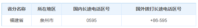 泉州辖区内区号:在泉州市辖区的鲤城区号、丰泽区号、洛江区号、泉港区号、惠安区号、安溪区号、永春区号、德化区号、金门区号、石狮区号、晋江区号、南安区号、都是0595,在这些辖区的区、县中相互拨打电话是不用加电话区号,直接输入电话号码就可以了。例如在鲤城区拨打丰泽区号码为3505007的电话只要直接输入号码拨打就可以了,不用加区号;国内其它地方拨打这些地区请参照国内拨打说明,国外拨打请按国际拨打说明;
