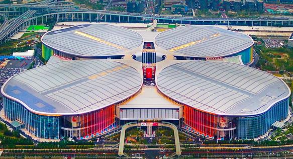 国家会展中心(上海),英文名:National Exhibition and Convention Center (shanghai) ,由国家商务部和上海市政府合作共建,总建筑面积147万平方米,拥有40万平方米的室内展厅和10万平方米的室外展场,配套15万平方米商业中心、18万平方米办公设施和6万平方米五星级酒店。中心位于上海市虹桥商务区核心区西部,与虹桥交通枢纽的直线距离仅 1.5 公里,通过地铁与虹桥高铁站、虹桥机场紧密相连。周边高速公路网络四通八达,2小时内可到达长三角各重要城市,交通便利。
