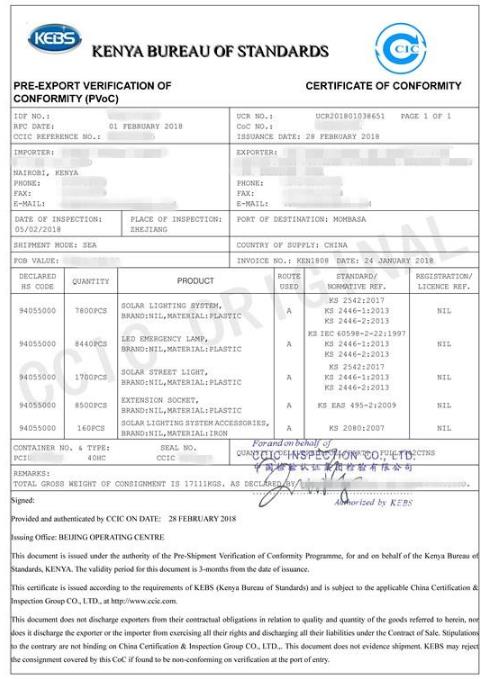 非洲国家各国对VOC符合性认证的称呼有所不同,比如尼日利亚为SONCAP、津巴布韦为CBCA、东非国家为PVoC等。