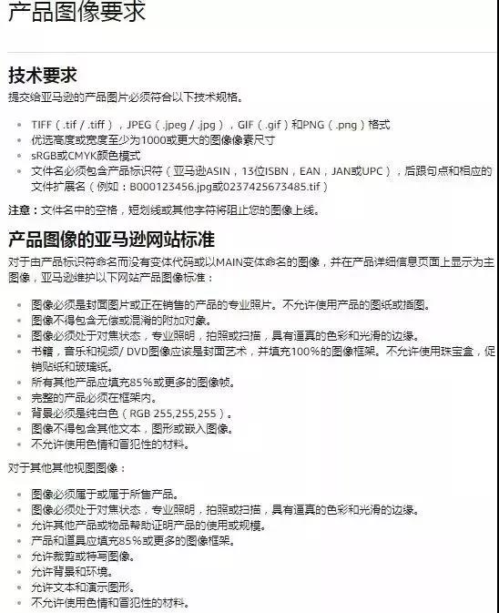现在亚马逊已经开始全面整顿不合规的listing图片,不合规的Listing主图和辅图被审查到都将被禁止显示。所以卖家在设计产品图片时,请参照亚马逊官方对于产品图片的要求,如下图: