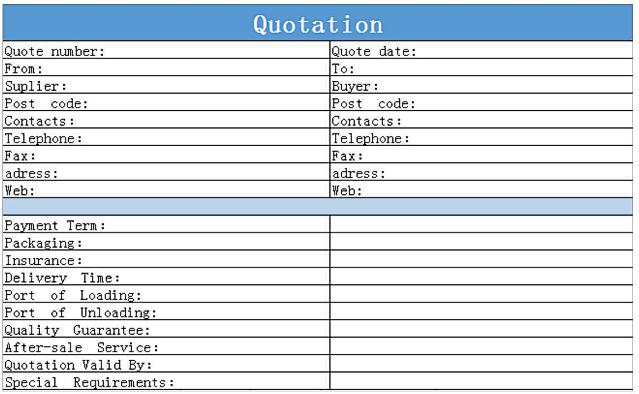 (3)标明报价有效期价格条款:FOB, CIF, CFR, EXW,付款方式:TTCL 蕞常见,按照公司规定;
